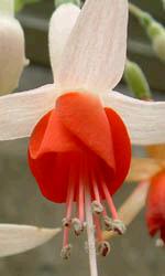 枝の先にちょうちんをぶらさげたような花をたくさんつけるので、初夏の鉢花として人気。熱帯植物でありながら、日本の夏の高温多湿苦手。フクシャとも呼ばれています。